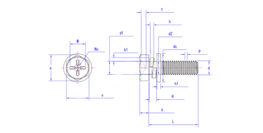 常用十字槽凹穴六角頭螺栓、彈簧墊圈和平墊圈組合件是指帶十字槽外六角螺栓彈平墊組合螺絲。簡稱組合螺栓。國標(biāo)號為GB9074.13.還有一另常用的外六角組合螺絲,國標(biāo)號為GB9074.17.是指切邊外六角組合螺絲。也就是說不帶十字的外六角組合螺栓。