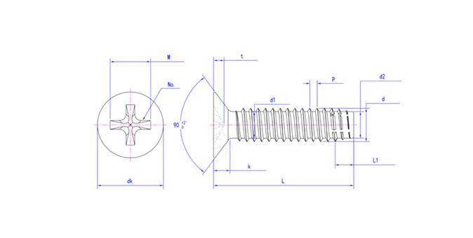 沉頭割尾自攻螺釘平尾釘IFI 502-8-1982 BF牙十字槽(H型)