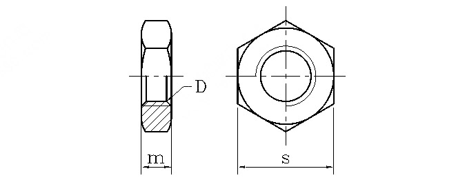 螺母的厚度是以螺母的公稱直徑為基準(zhǔn)進(jìn)行劃分的,對(duì)于普通M螺紋螺母,其厚度的分界點(diǎn)為0.5D和0.8D(D為螺母的公稱直徑)。GB6172六角薄螺母厚度:0.5D≤厚度<0.8D,該結(jié)構(gòu)螺母承載能力非常有限,主要用于承受剪切載荷的連接副或非成立結(jié)構(gòu)的連接。